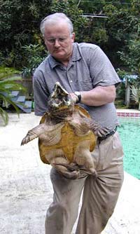 Peter Pritchard holds captive alligator snapping turtle at the