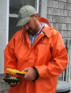 Hal Avery scanning a diamondback terrapin for a pit tag