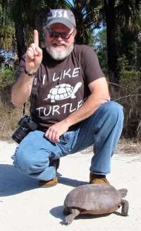 George L. Heinrich with an adult gopher tortoise (Gopherus polyphemus), the first species documented during The Big Turtle Year. Photo by Andrew Farren |