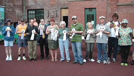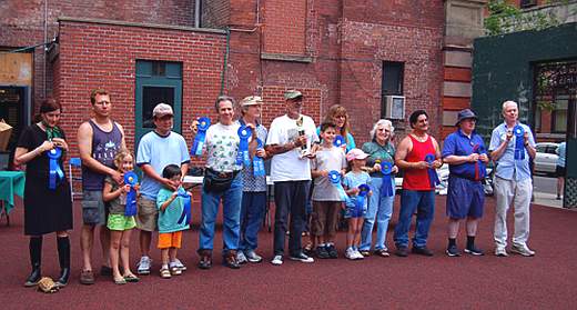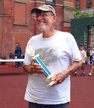 ![]() Frank Schneider, pictured right, holds trophy for his breeding pairs of Central Asian Tortoises (Testudo horsefieldii) and Spider Tortoises (Pysis arachnoides), awarded by Show Judge Bill McCord, shown below with Frank. Photos by Anita Salzberg Judging Burmese brown tortoise (Manouria emys) = Asian Brown Tortoise Winners photos by Anita Salzberg