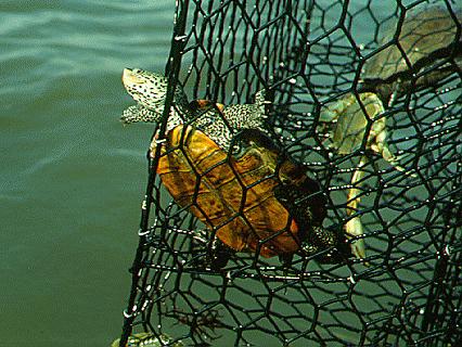 Northern diamondback terrapin in commercial crab trap.